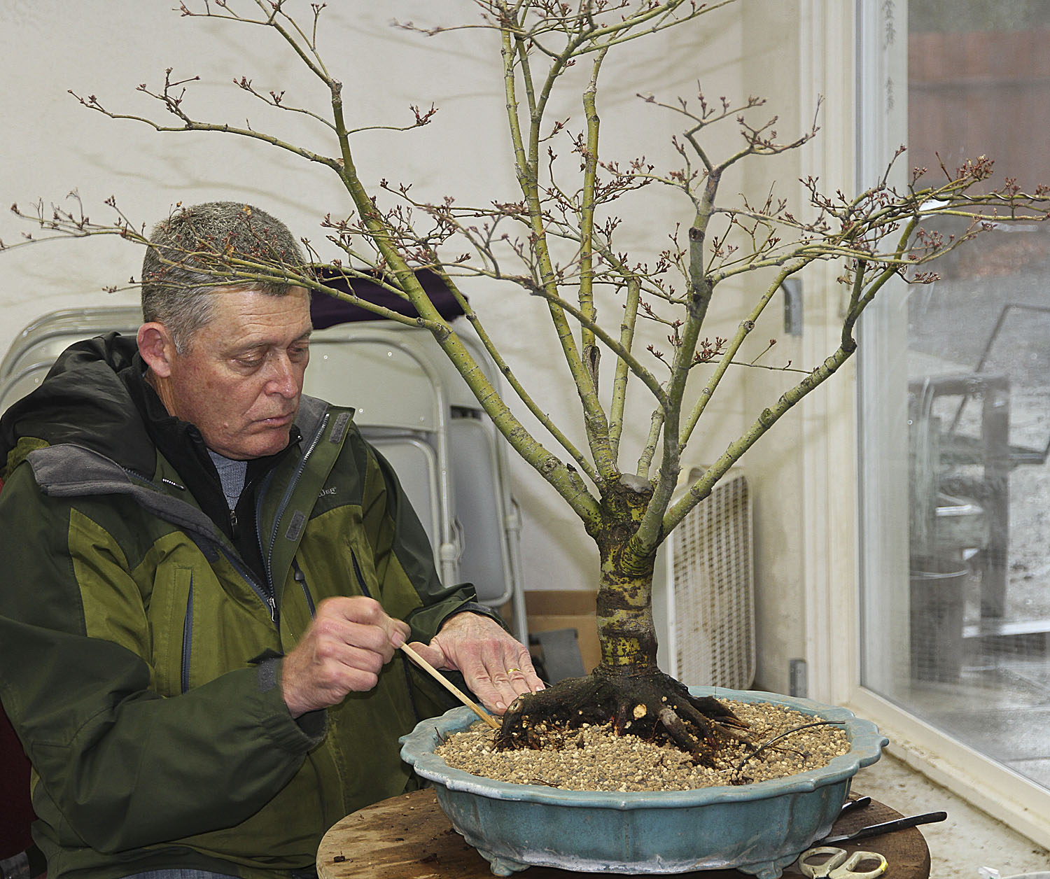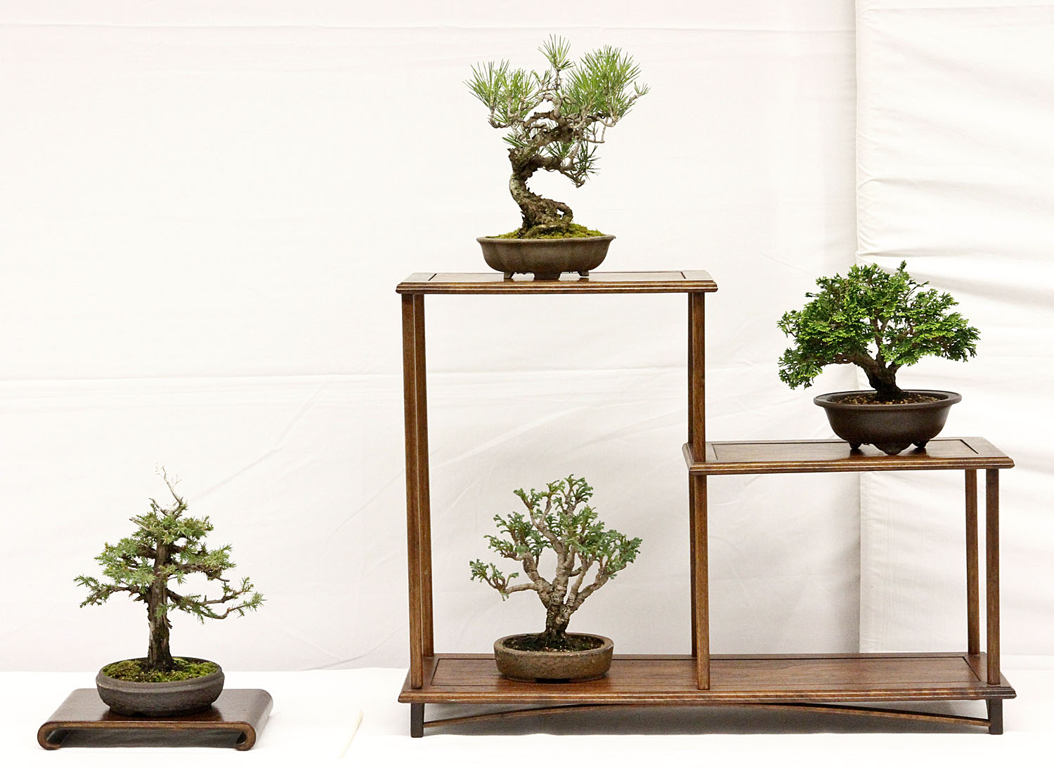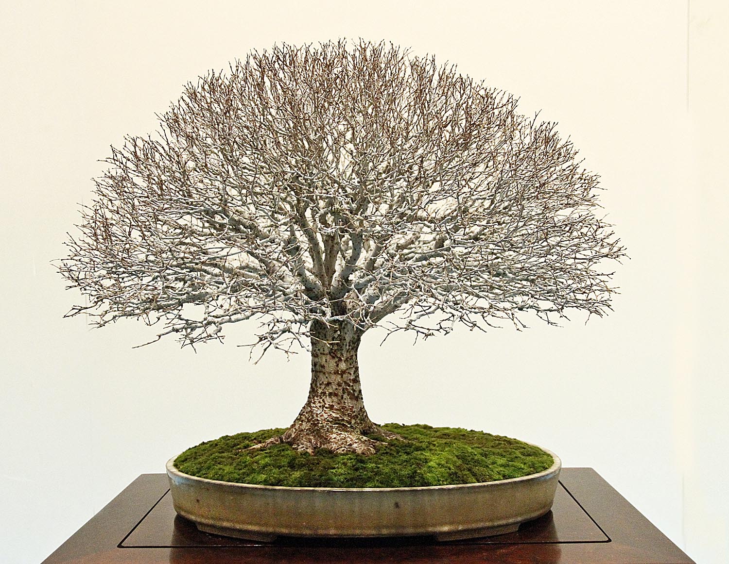 We later returned to the exhibition where I was allowed to take a few photos for International BONSAI. Last year during the remodeling the museum overhead lighting was changed to “pinkish” bulbs which might look good with other art, but not bonsai. Some of the Trident maple bonsai appeared to have pink bark, rather than the characteristically white coloring. Additionally, spotlights presented dramatic lighting on many bonsai highlighting flowers or twigs. All of these factors did NOT help with my photography, however hopefully my friend Joe Noga can compensate when color correcting and perfecting the images for my magazine. Having spent over 35 years teaching color reproduction, Joe has a calibrated eye for perfection with unequaled results. So, please note that the color is not correct in the attached photos. If you want to see the true beauty and color of the bonsai you will need to wait until June when the next issue of International BONSAI is released with photos from the exhibition.