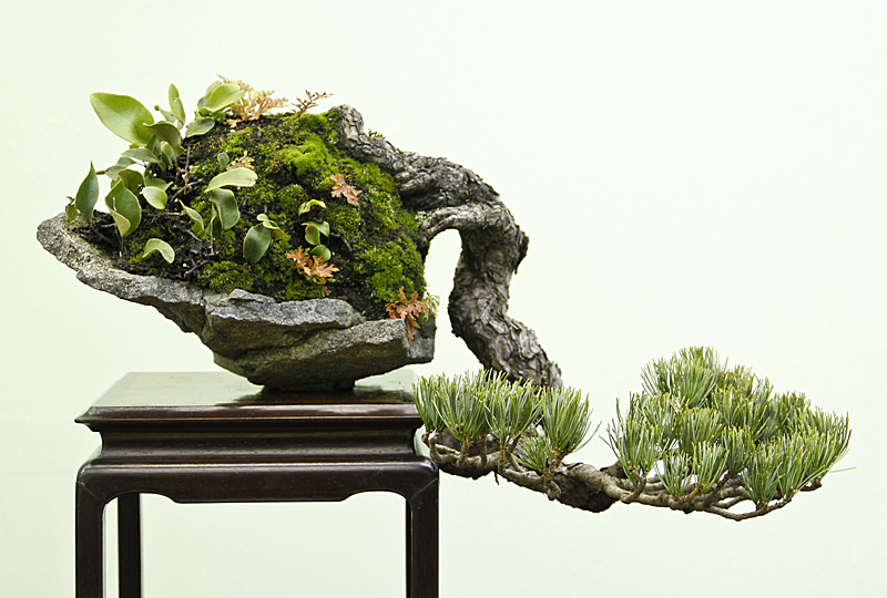 Japanese five-needle pine bonsai rock planting.